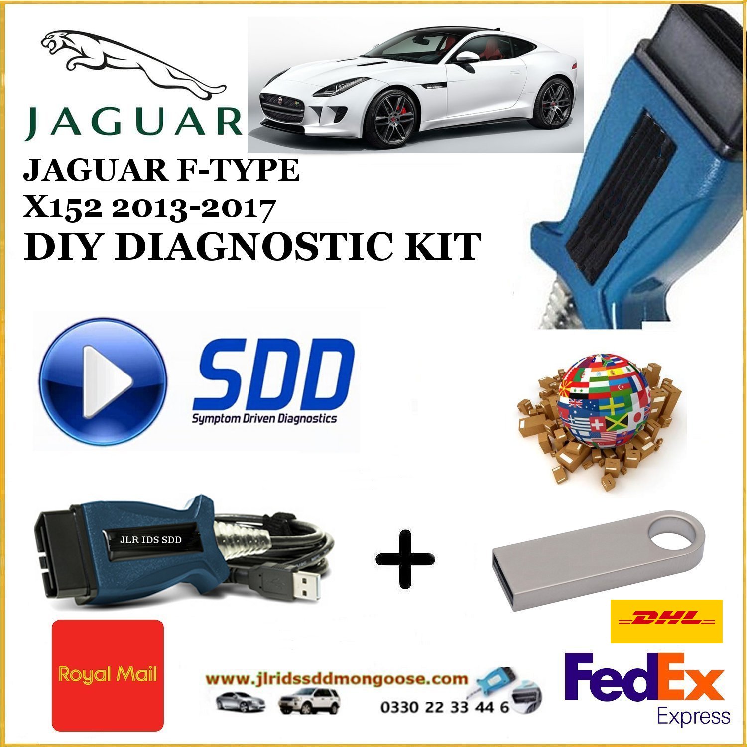SDD JLR F-TYPE X152 Mongoose Pro J2534 Diagnostics kit Cable 2013-2017