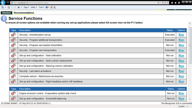 Alongside diagnostics the service functions allows vehicle and module programming and vehicle customisation.